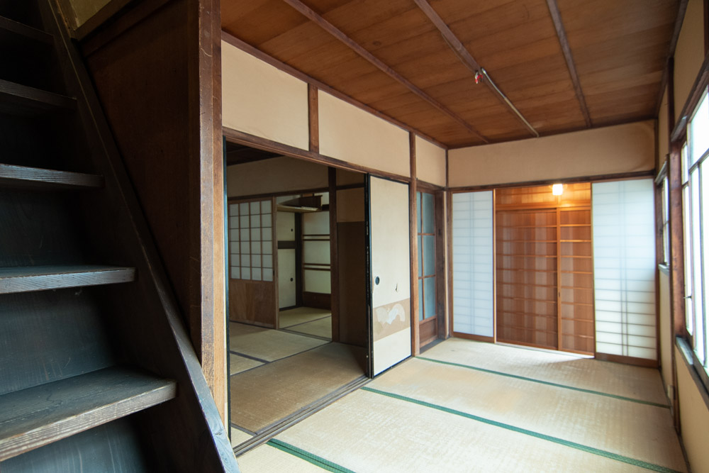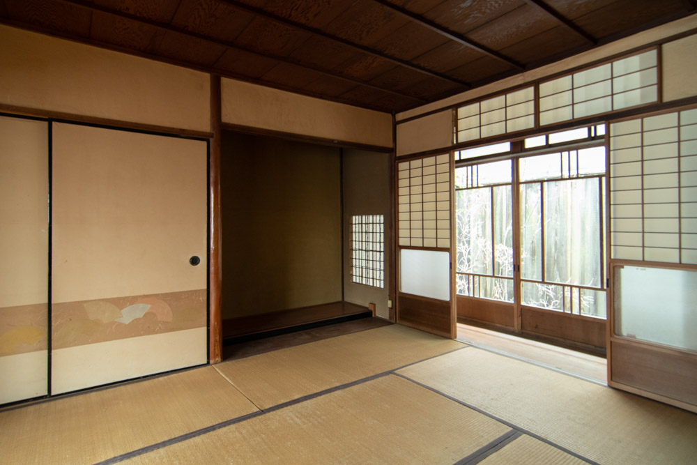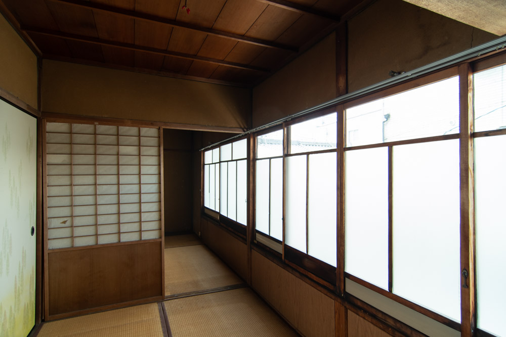 隣接する2棟の町家のうち、南側の1棟。北側の隣家も購入可能で、一方をゲストハウスや賃貸住宅として利用し、もう一方を個人住宅として利用するなど、さまざまな可能性がある。.