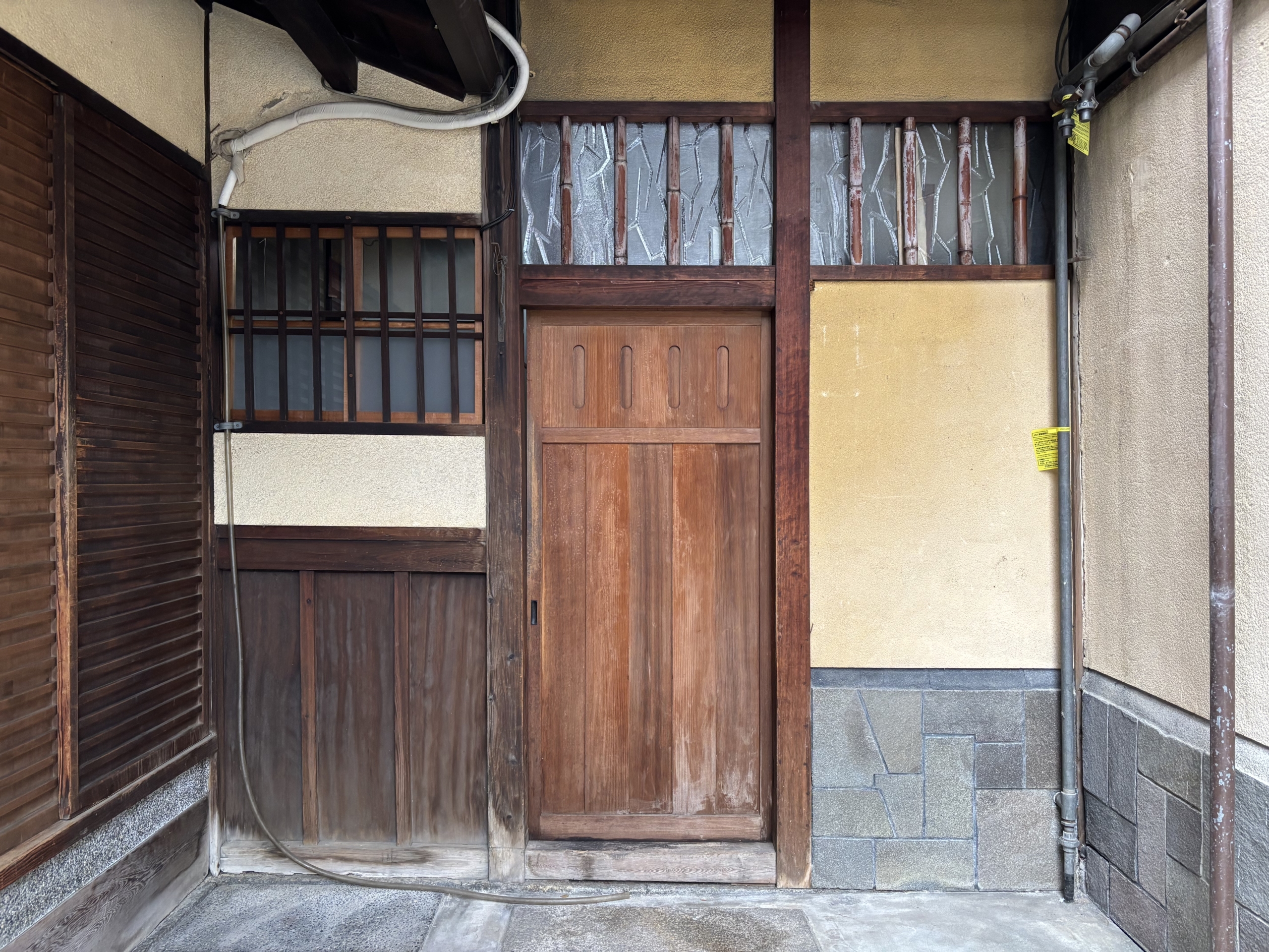 伝統的な高塀の町家を彷彿とさせる重厚な佇まいの外観で、間口は約6mと広い。.