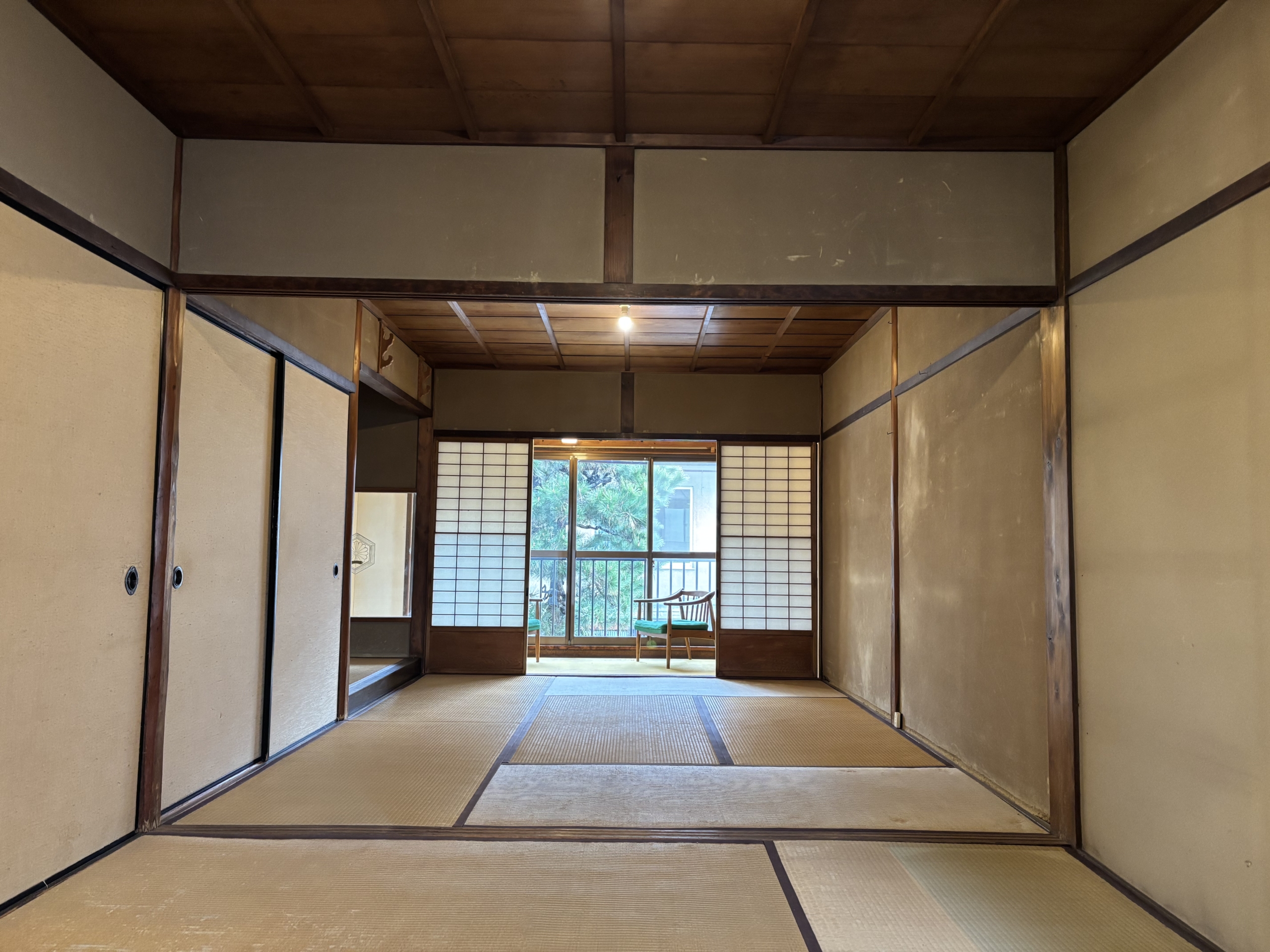 この広大な町家には、日本の伝統と近世の西洋デザインのユニークな融合である大正時代のエレガンスを彷彿とさせる、珍しい洋風の別館がある。.